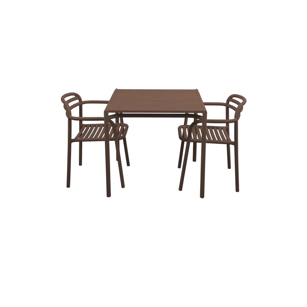 Bliss spisebord inkl. to stole med armlæn - Ørkenrød aluminium
