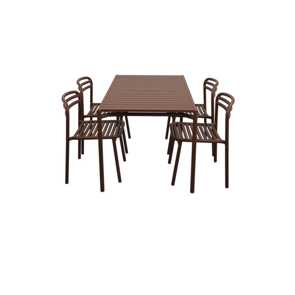 Bliss spisebord inkl. fire stole - Ørkenrød aluminium