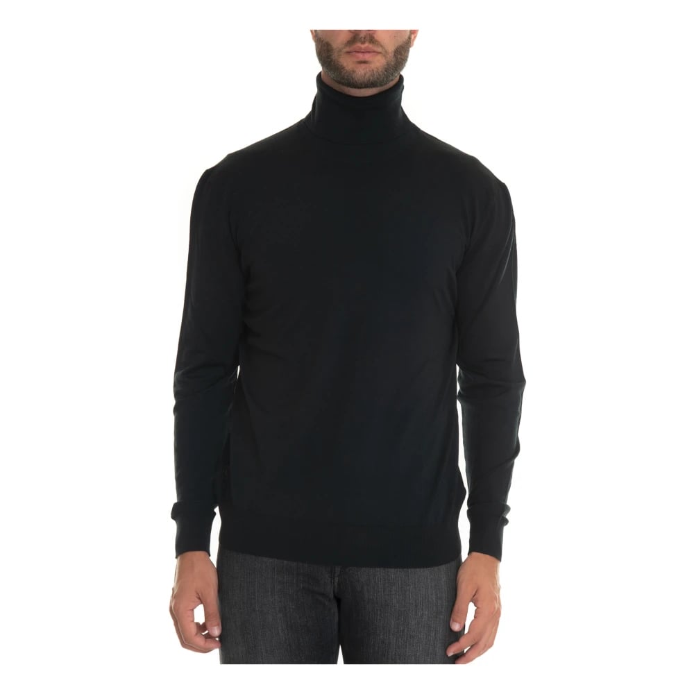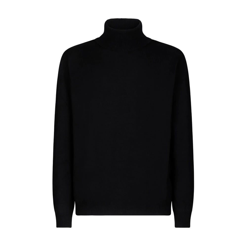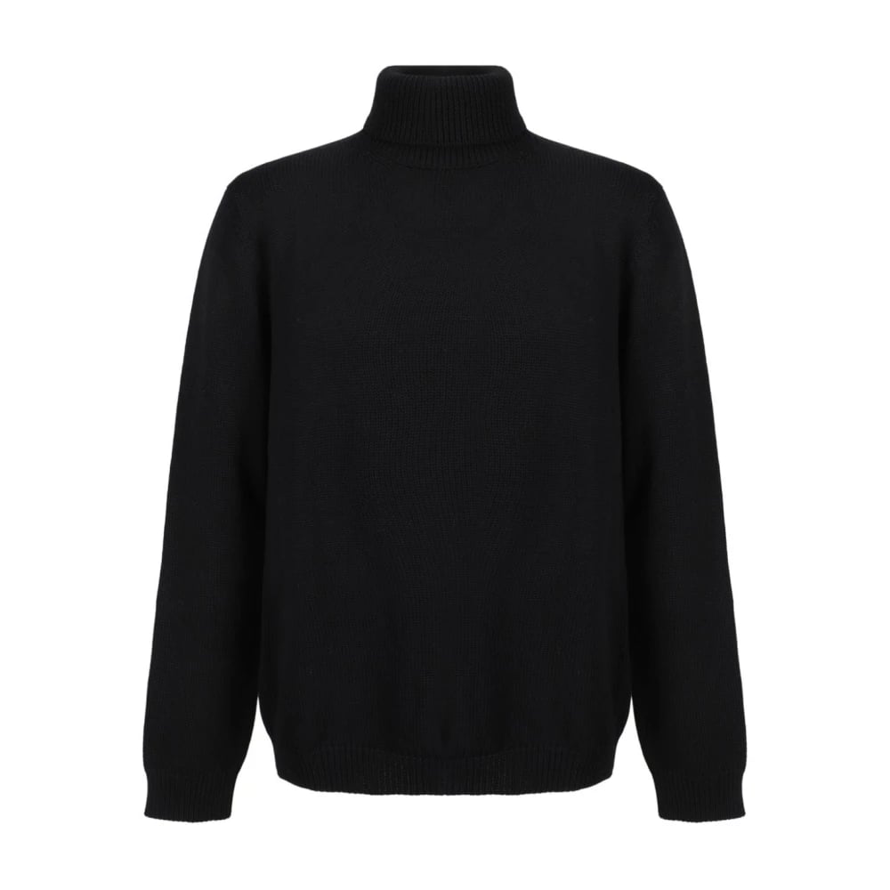 Roberto Collina, Strik , Herre, Sort, 2XL, Uld, Luksuriøs Sort Turtleneck Sweater Strikvarer