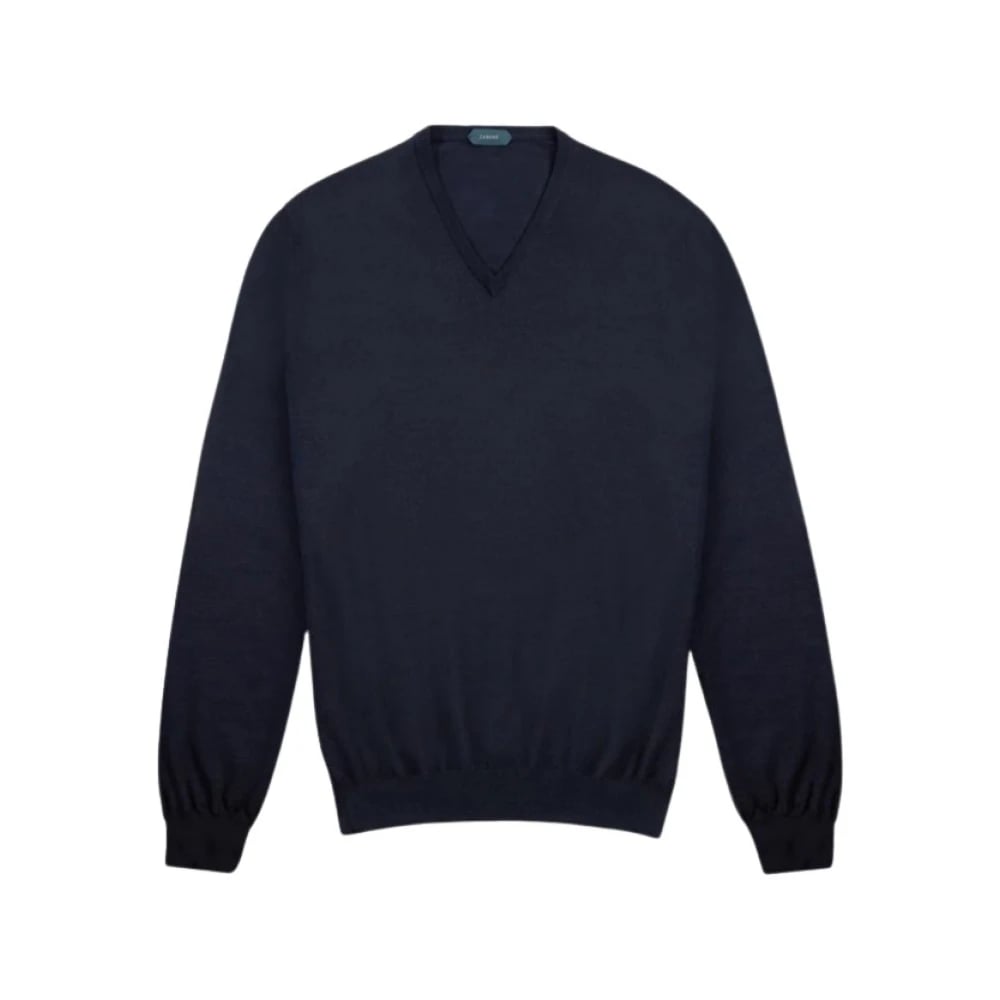 Zanone, Strik , Herre, Blå, 3XL, Uld, Flexwool V-neck Sweater