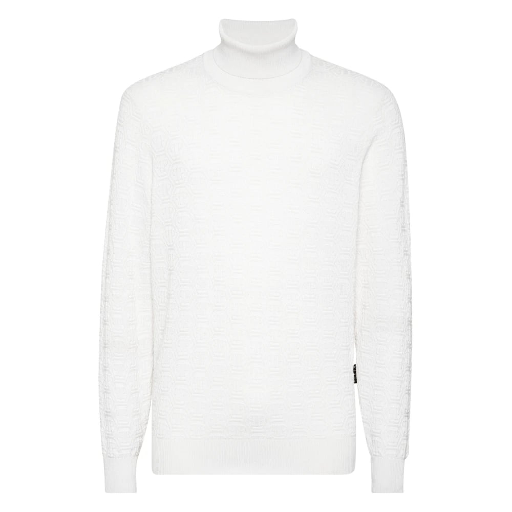 Philipp Plein, Strik , Herre, Hvid, XL, Uld, Turtle Neck Monogram
