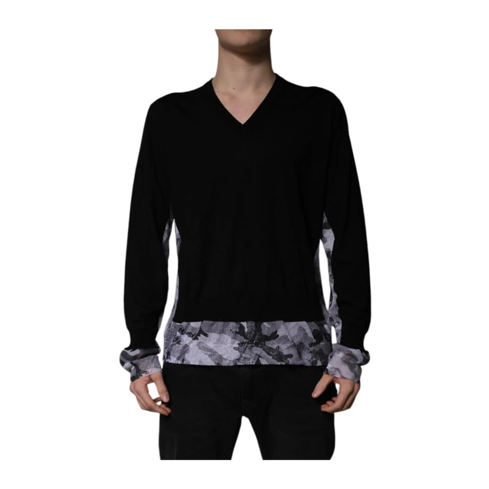 Dolce & Gabbana, Strik , Herre, Sort, 2XL, Uld, Sort Camouflage Uld V-Hals Sweater