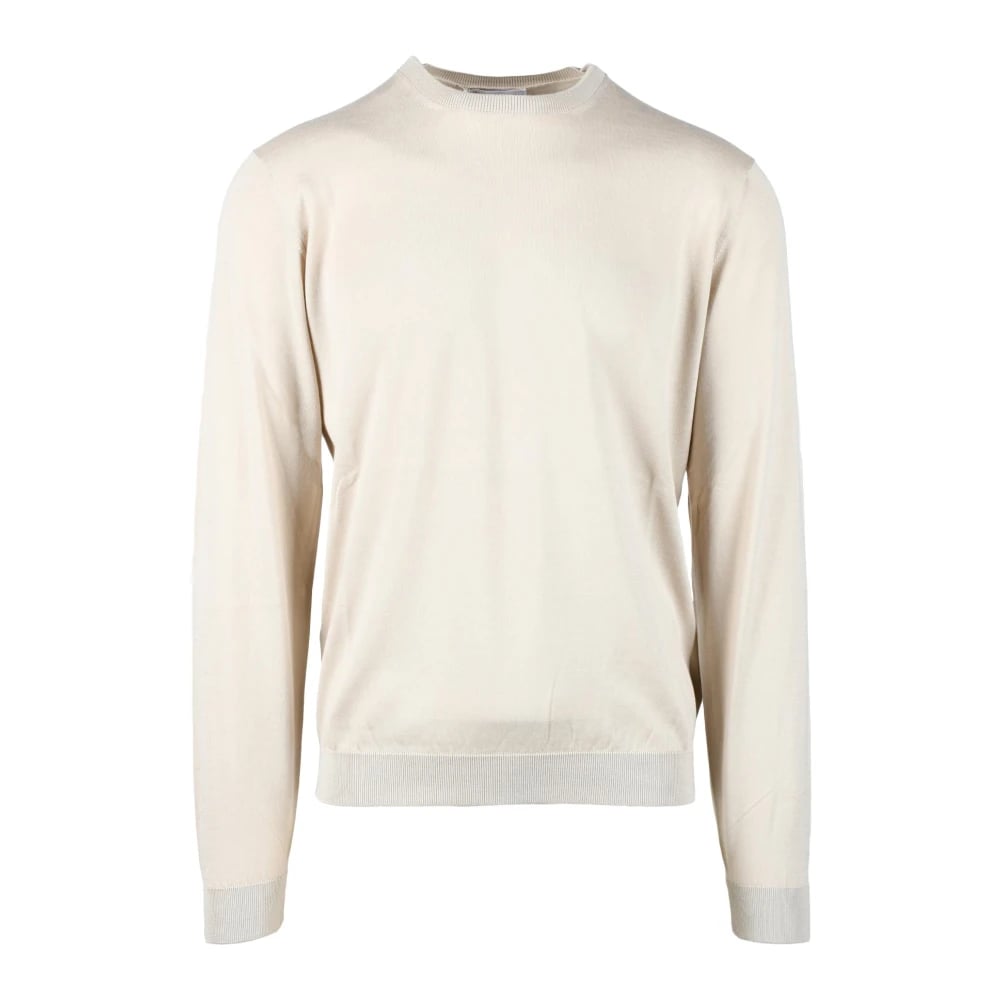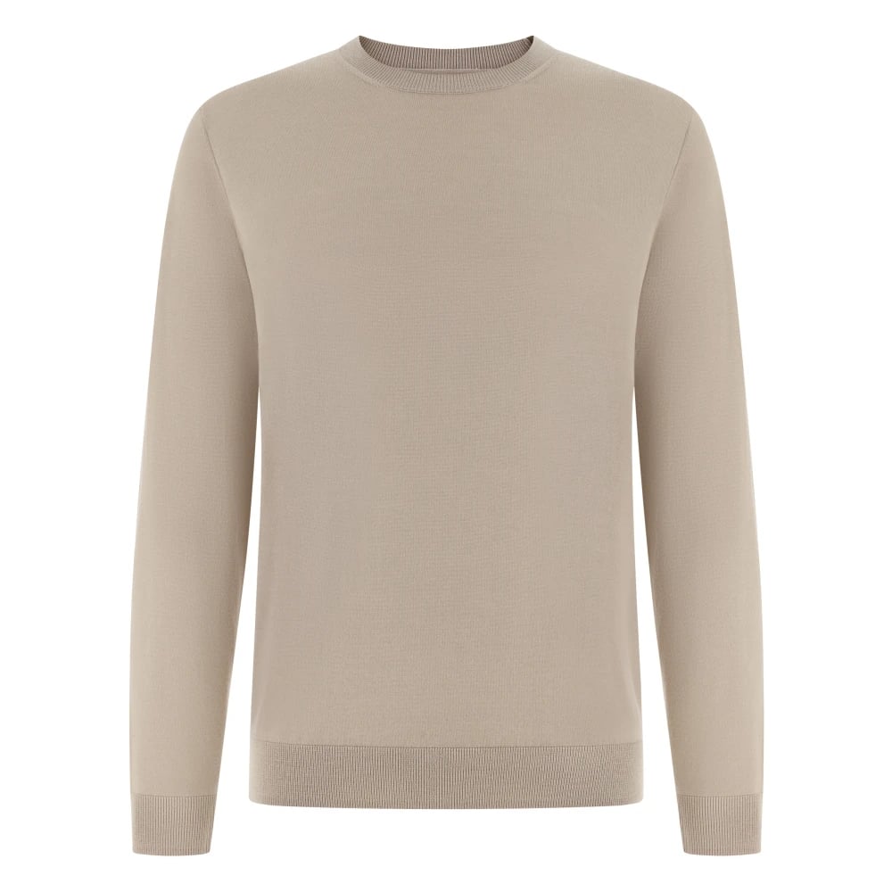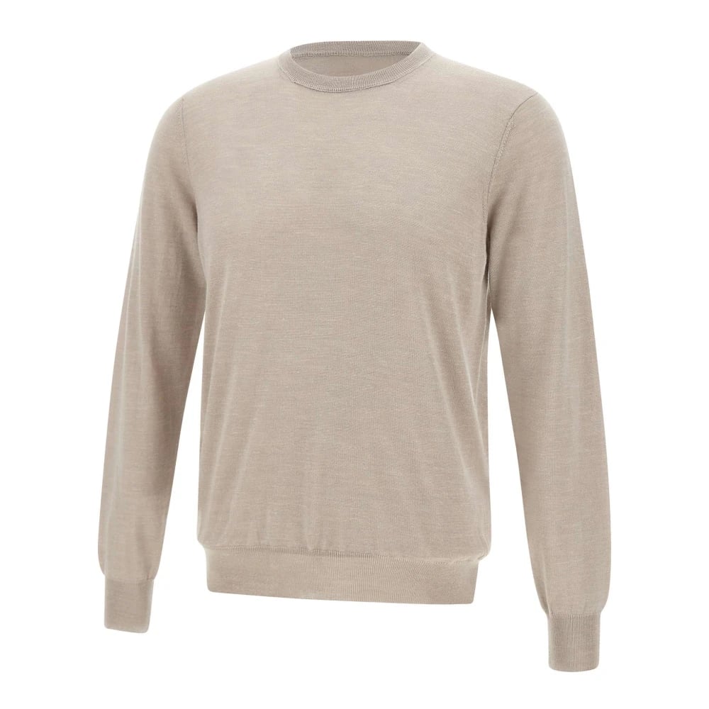 Boggi Milano, Strik , Herre, Beige, S, Uld, Crew Neck Jumper i Superfin Uld