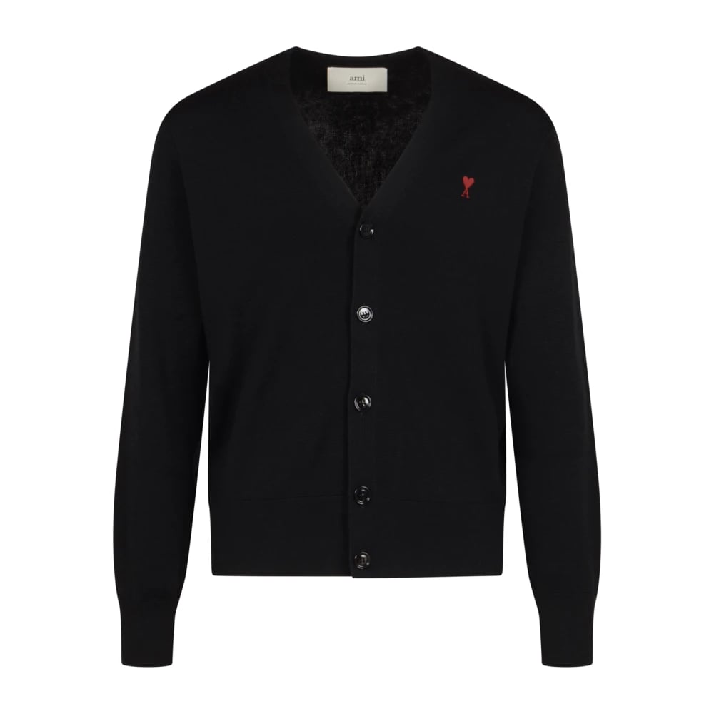 Ami Paris, Strik , Herre, Sort, M, Uld, Hkc361 Merinos Cardigan