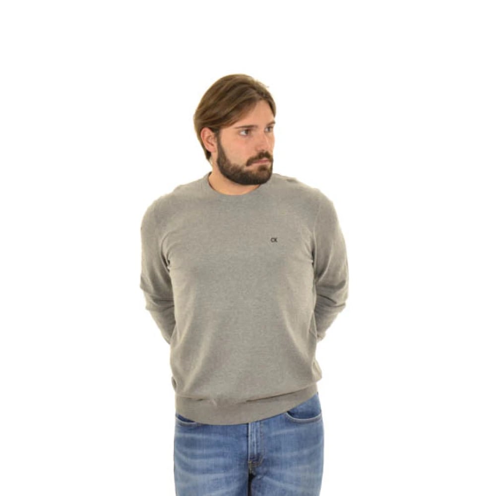 Calvin Klein, Strik , Herre, Grå, S, Bomuld, Grå sweater med logo detalje