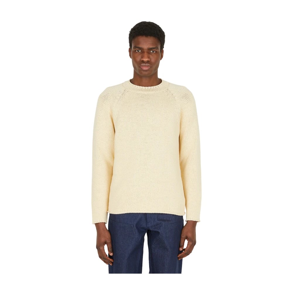 Stone Island, Strik , Herre, Hvid, XL, Bomuld, Crew Neck Sweater Naturale