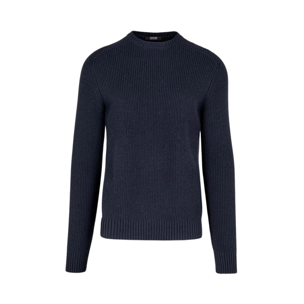 Herno, Strik , Herre, Blå, L, Uld, Uld Sweatshirt med Ribkant