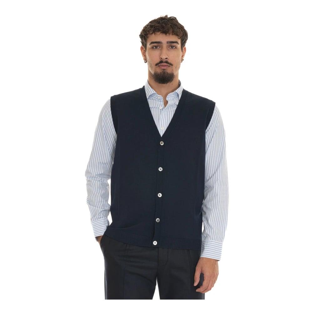 Hindustrie, Strik , Herre, Blå, XL, Uld, Merino Wool Strikket Vest med Perlemor Knapper