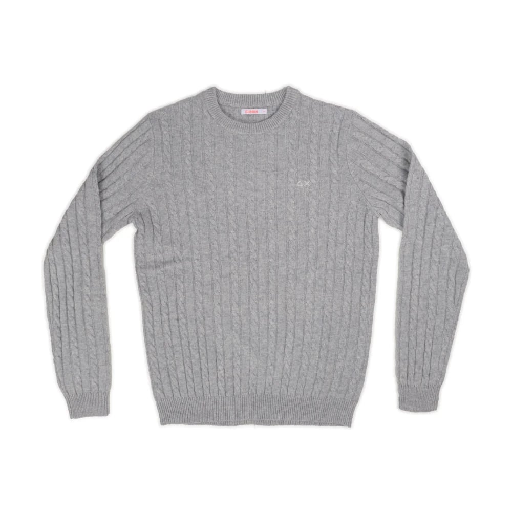 Sun68, Strik , Herre, Grå, 2XL, Uld, Stilfulde hættetrøjer med kabelstrikket design