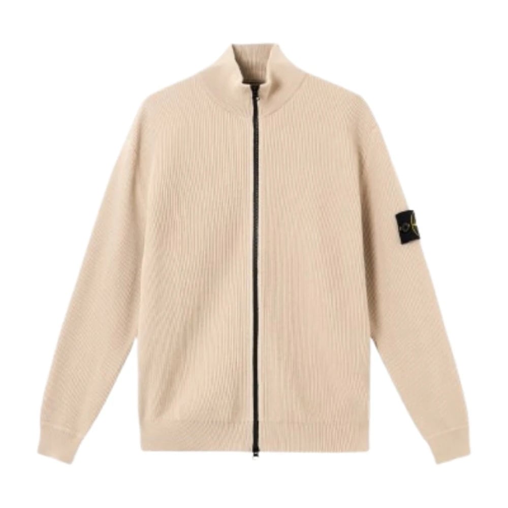 Stone Island, Strik , Herre, Beige, M, Bomuld, Beige Ribstrikket Lynlås Cardigan