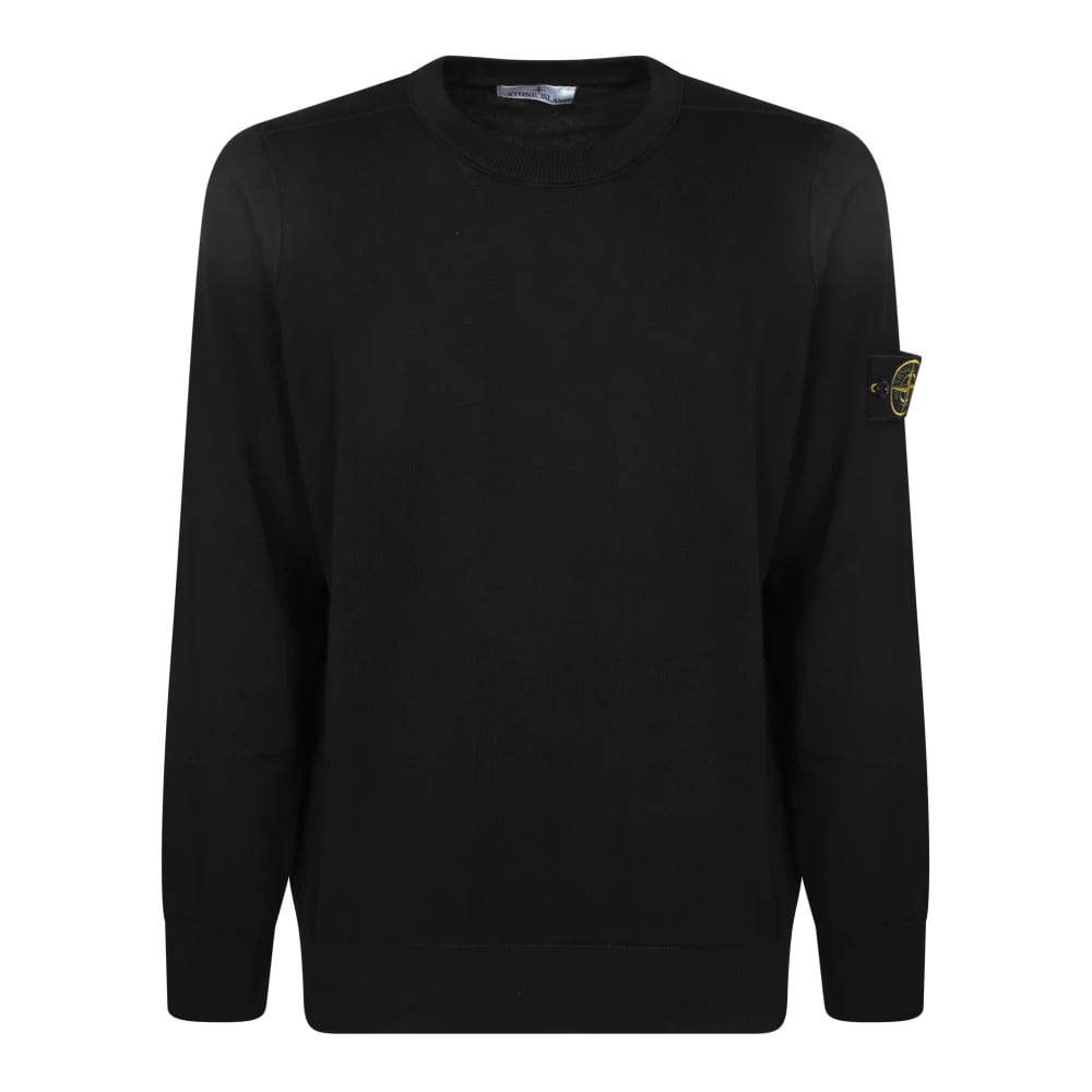 Stone Island, Strik , Herre, Sort, M, Bomuld, Sort bomulds sweater med lange ærmer