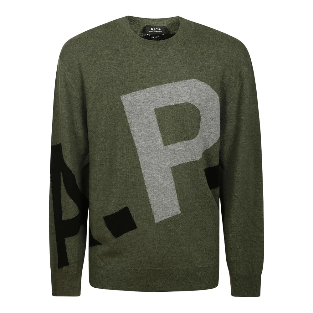 A.P.C., Strik , Herre, Grøn, L, Uld, Pull Logo All Over H