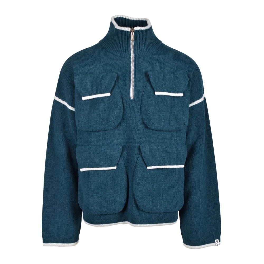 Boggi Milano, Strik , Herre, Blå, 2XL, Cashmere, Cashmere Blend Half Zip Sweater