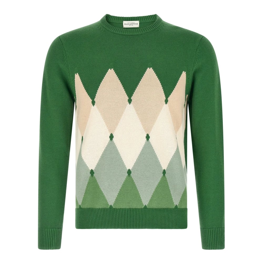 Ballantyne, Strik , Herre, Grøn, 3XL, Bomuld, Argyle Sweater