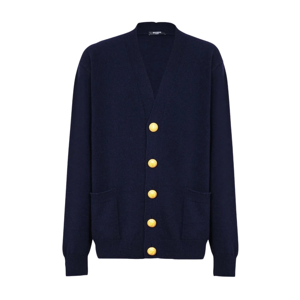 Balmain, Strik , Herre, Blå, L, Blå Knappet Jakke Lange Ærmer