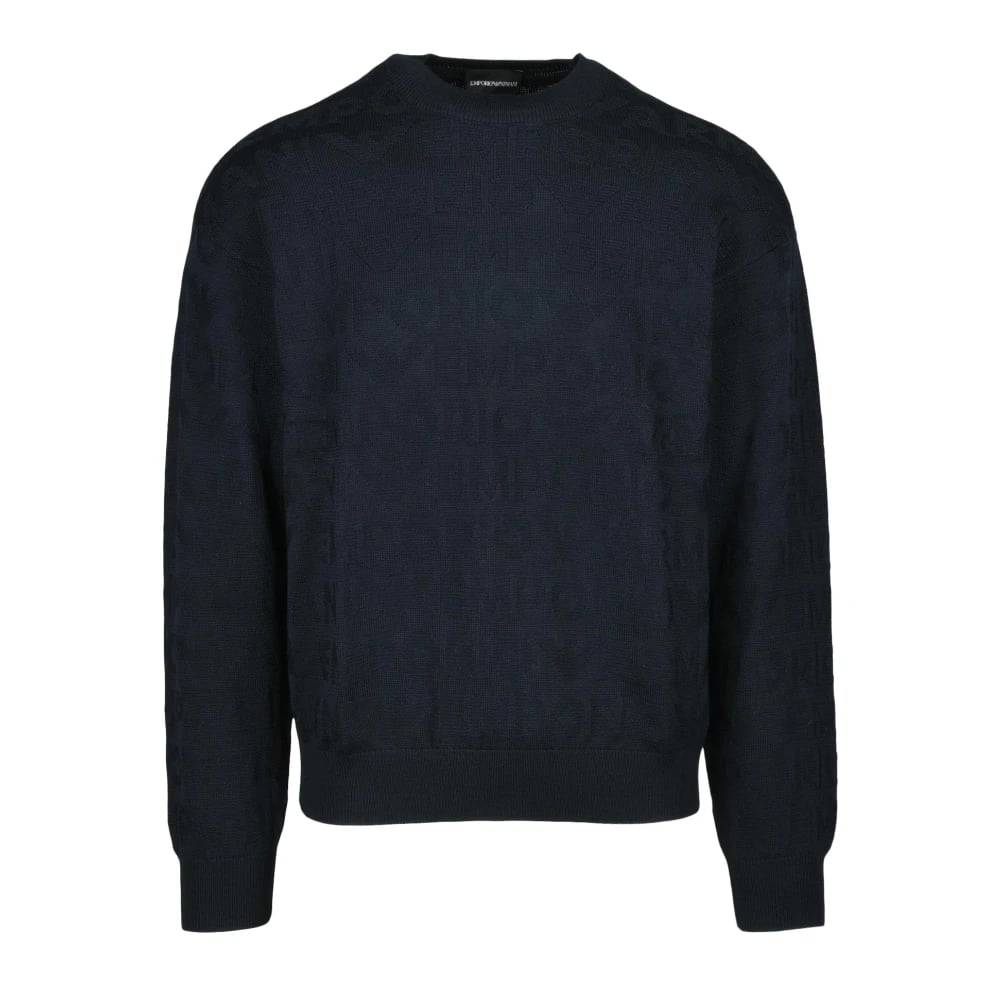 Emporio Armani, Strik , Herre, Blå, M, Uld, Blå Uld Jacquard Sweater