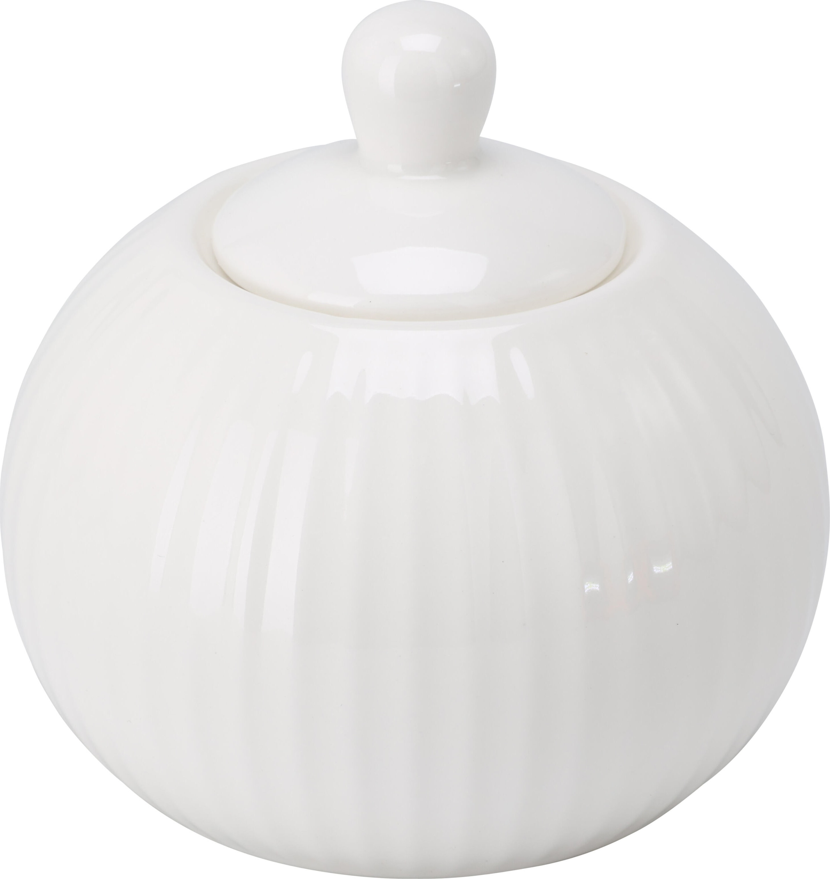 Sukkerskål med låg, riflet, hvid, porcelæn, 310ml.
