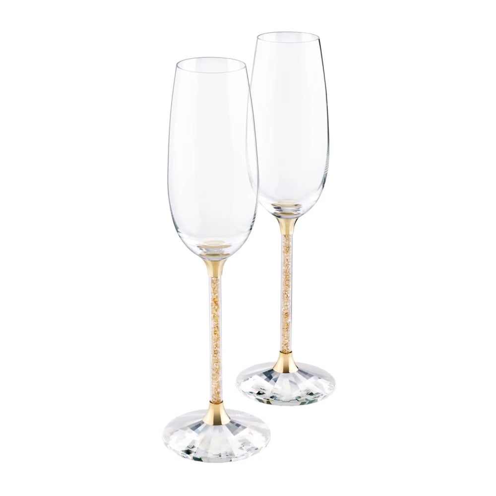 Swarovski, Home , unisex, Grå, ONE SIZE, Uld, Unisex Champagneglas Guld Farve 2-Delt Sæt Crystalline 5102143