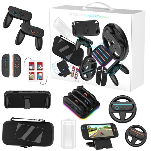 Tilbehørssæt til Nintendo Switch 2 - Etui, rat, håndkontrol