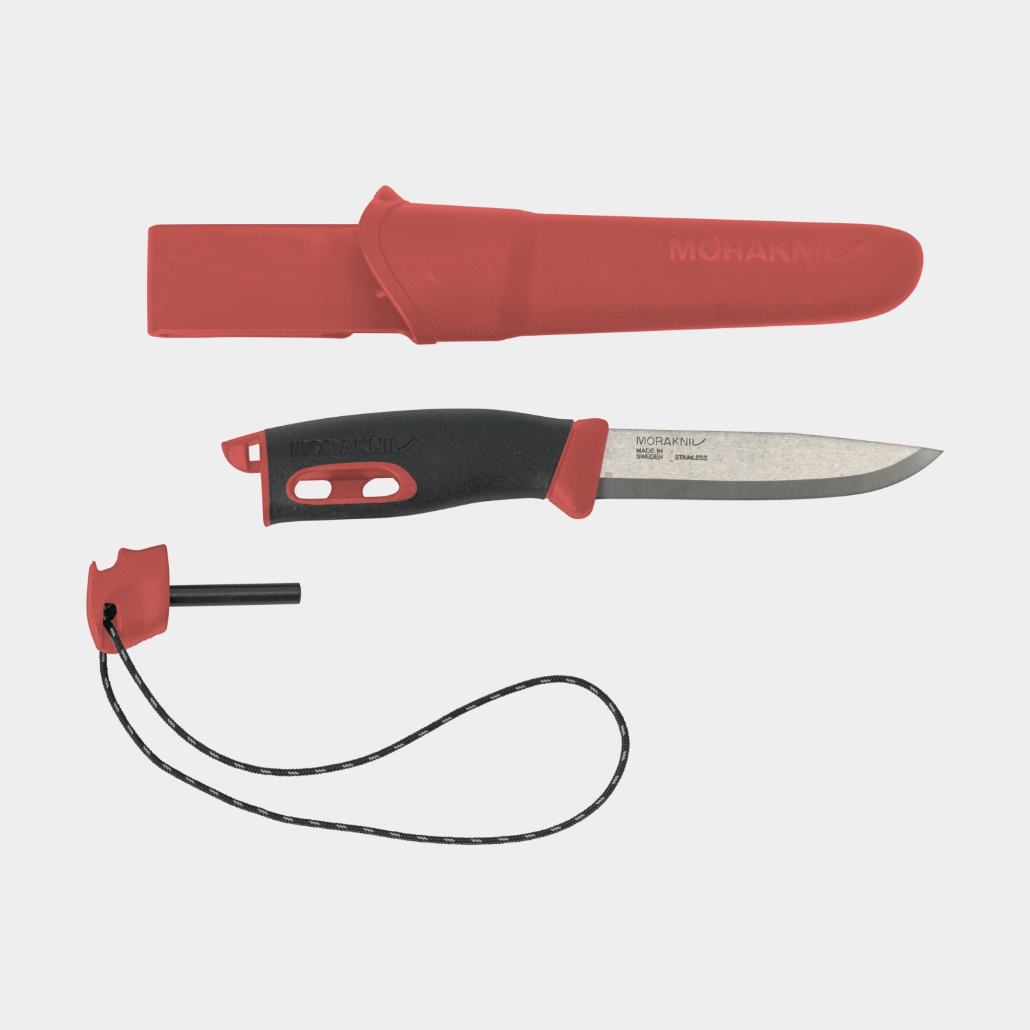 Friluftskniv med integreret tændstål Morakniv Companion Spark (S), 223 mm, TPE-gummi / genanvendt svensk rustfrit stål, rød