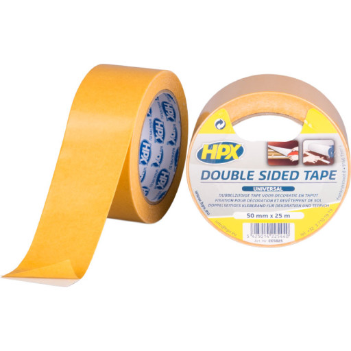 HPX tæppe-gulvtape, dobbeltklæbende, hvid, 50 mm x 25 m
