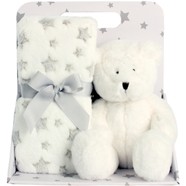 Carlobaby Fleece tæppe & Plysdyr Hvid Bamse