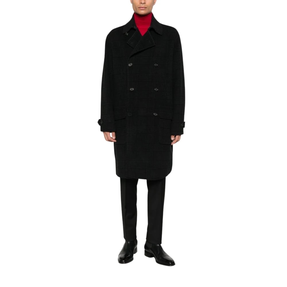 Paolo Pecora, Frakker , Herre, Sort, XL, Uld, Dobbeltradet ternet frakke