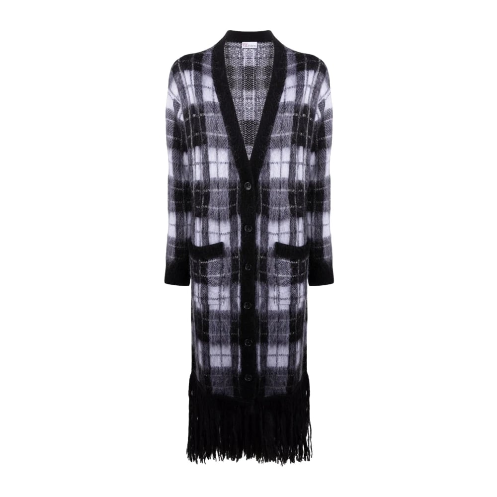 RED Valentino, Strik , Dame, Sort, M, Ternet Moto Frakke med Frynser