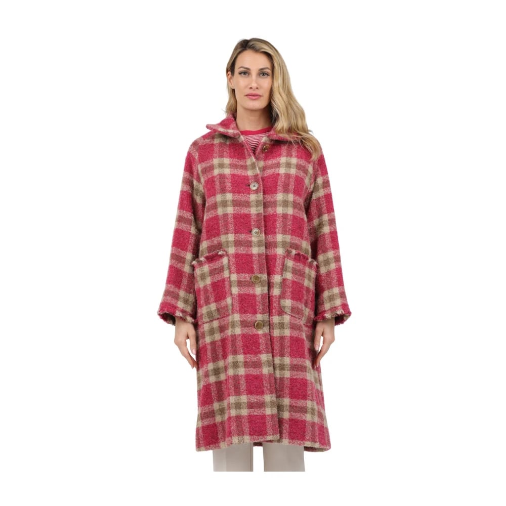 ROSSO35, Frakker , Dame, Flerfarvet, M, Polyester, Ternet Frakke med Knaplukning og Lommer