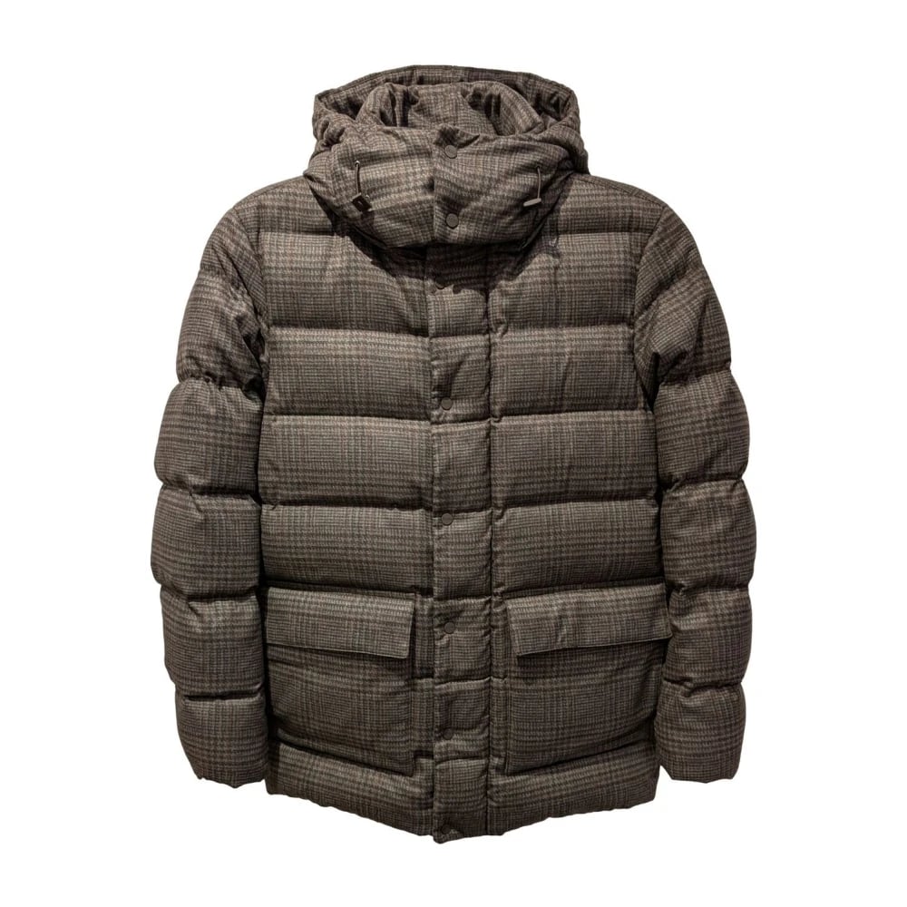 Herno, Jakker , Herre, Brun, M, Brun Ternet Puffer Frakke med Hætte