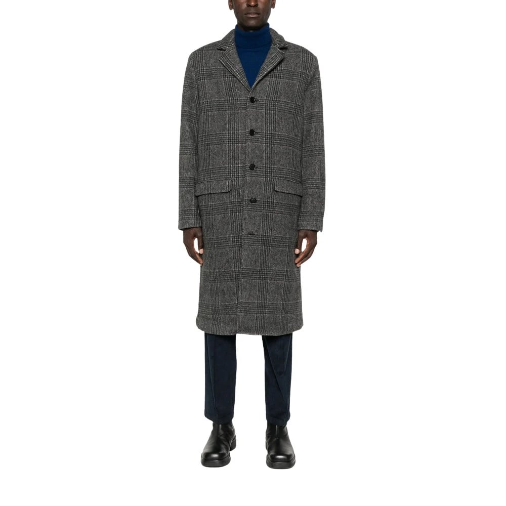 Samsøe Samsøe, Frakker , Herre, Grå, L, Uld, Gråt Ternet Frakke Knaplukning