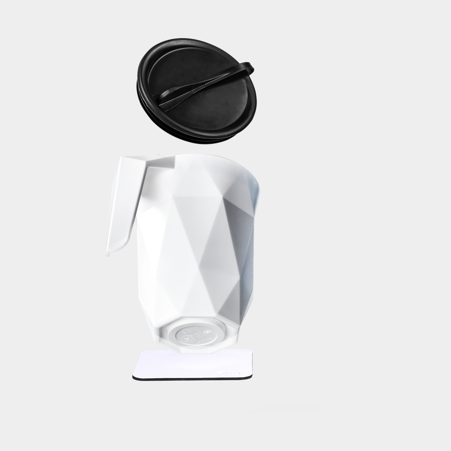 Magnetisk kaffe-/tekop i plast Silwy Magnet Coffee Cup To-Go, hvid, 30 cl / 300 ml + hvidt magnetisk glasunderlag + låg