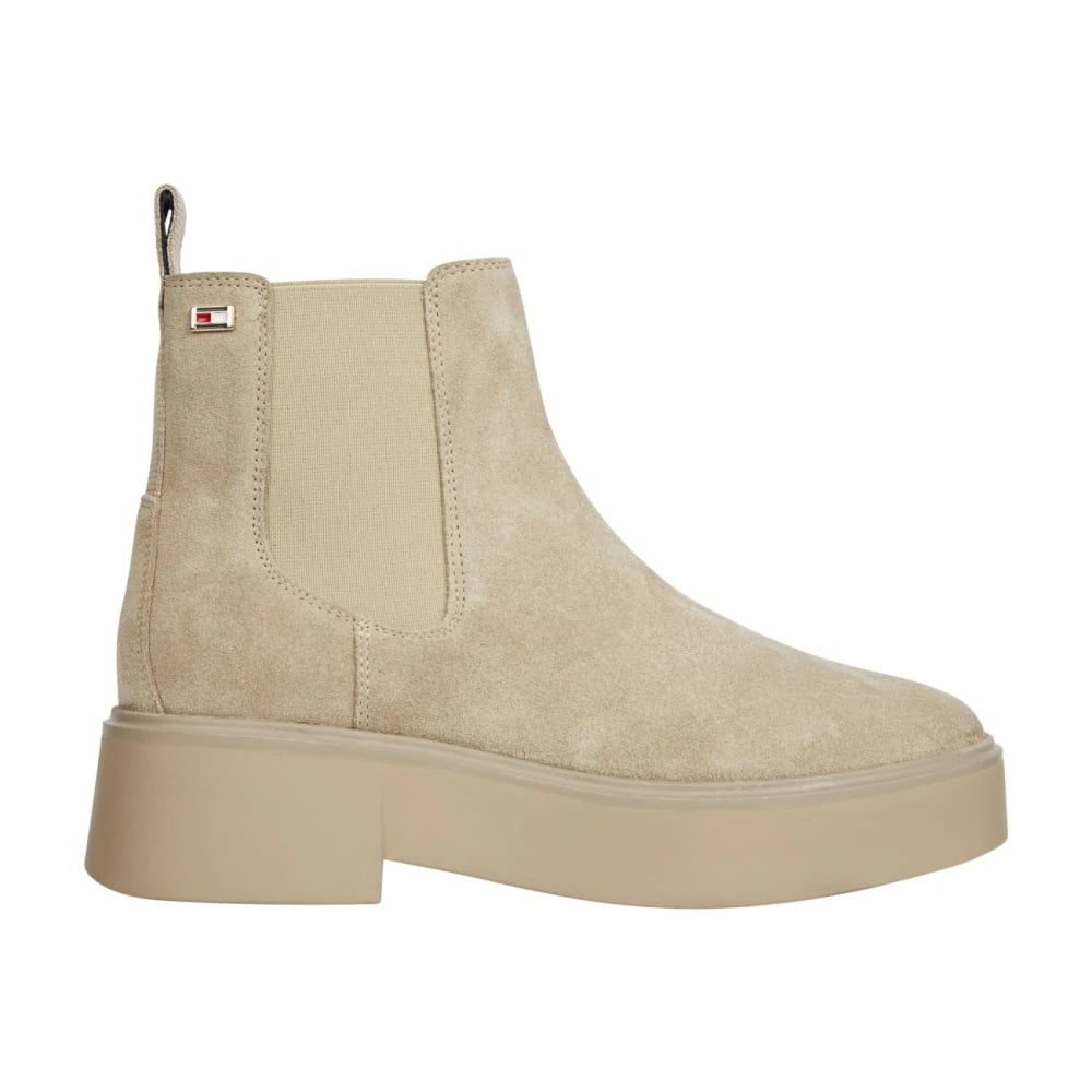 Tommy Hilfiger, Sko , Dame, Beige, 39 EU, Chelsea Flag Ankelstøvler