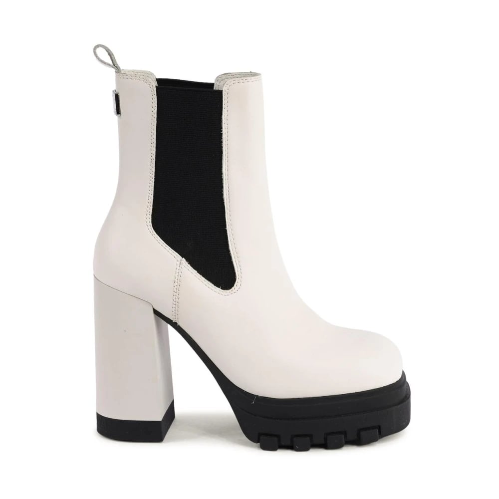 Tommy Hilfiger, Sko , Dame, Hvid, 39 EU, Læder, Hvide Læder Chelsea Støvler Blokhæl
