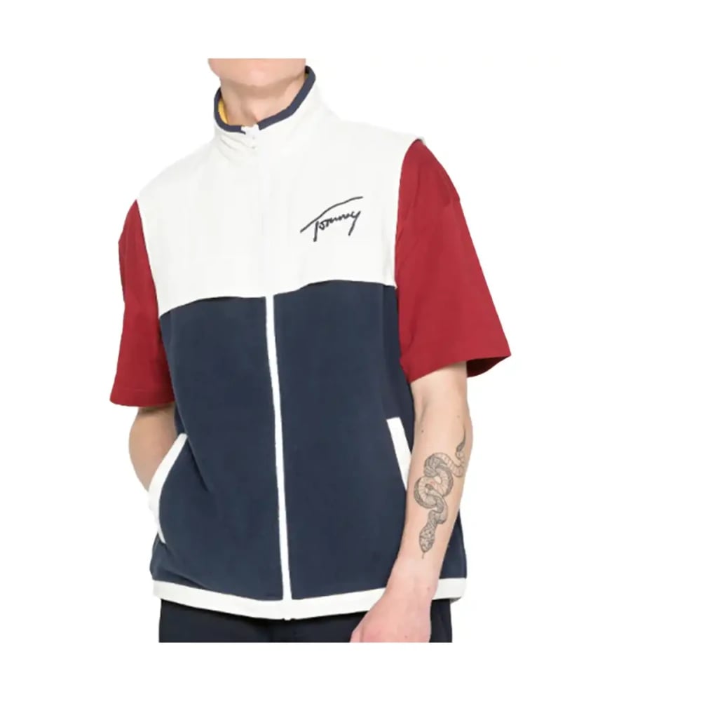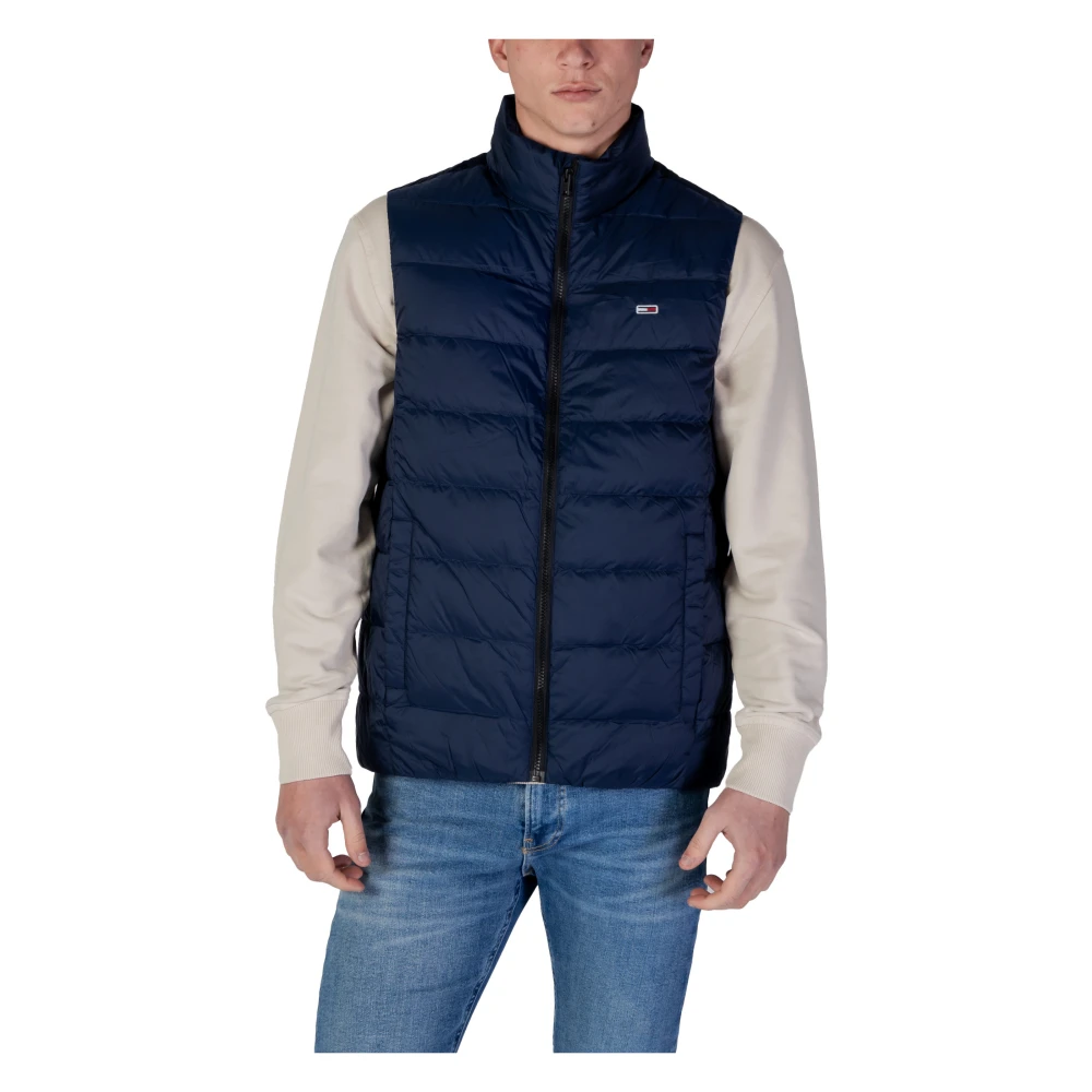 Tommy Jeans, Jakker , Herre, Blå, L, Uld, Blå Ærmeløs Lynlås Jakke