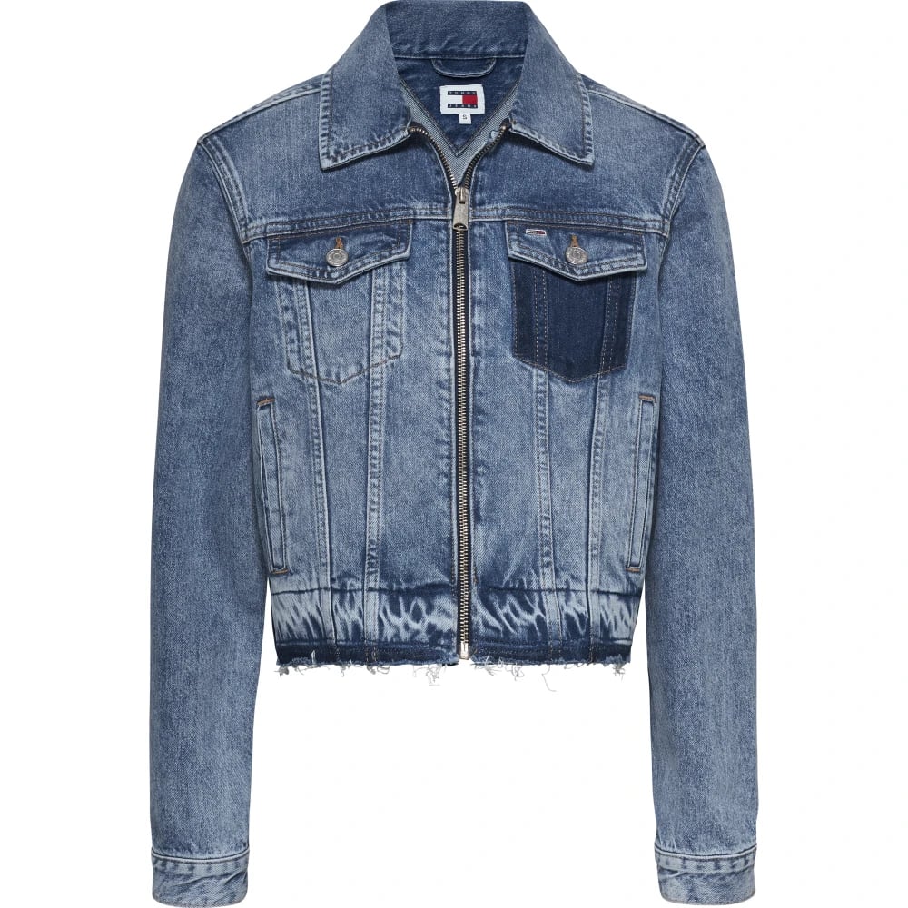 Tommy Jeans, Jakker , Dame, Blå, 2XS, Denim, Izzie Zip-Thru Denim Jakke