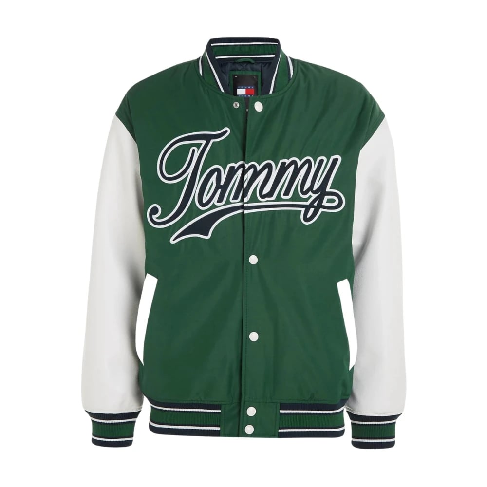 Tommy Jeans, Jakker , Herre, Grøn, M, Chicago Oversized Jakke Grøn/Hvid