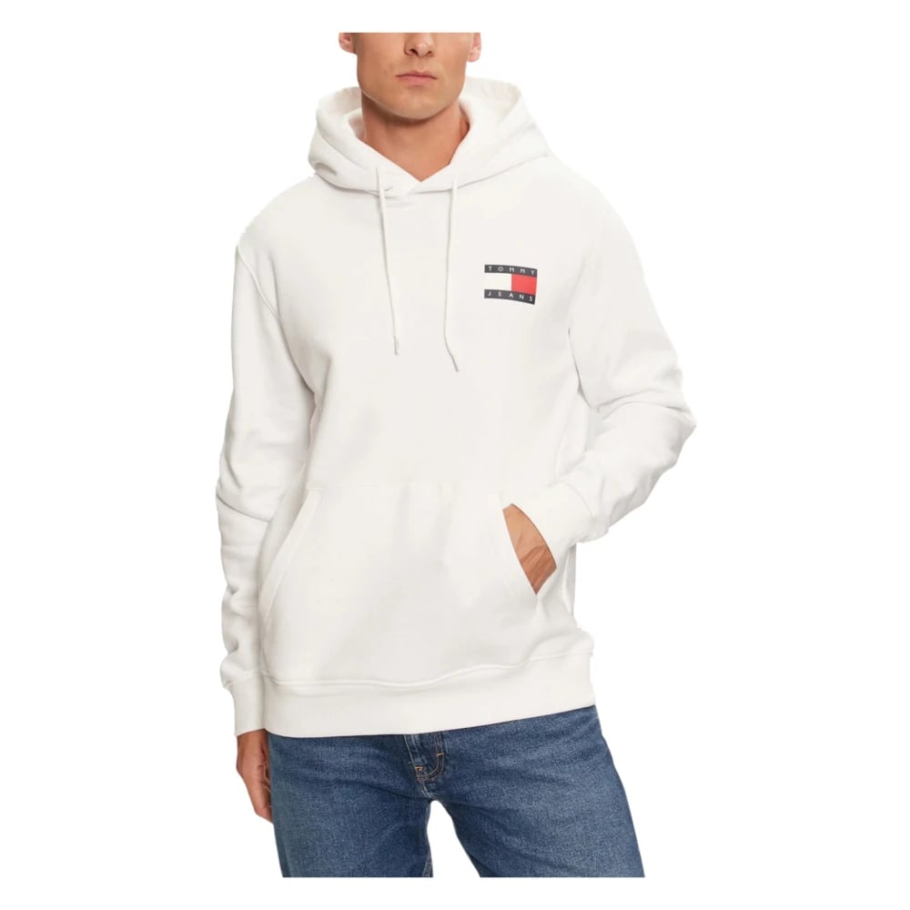 Tommy Jeans, Sweatshirts , Herre, Hvid, S, Bomuld, Essential Flag Hoodie til Mænd
