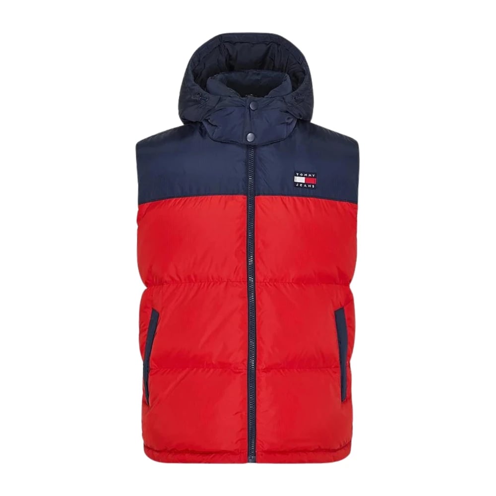 Tommy Jeans, Jakker , Herre, Rød, S, Polyester, Rød Farveblok Polstret Ærmeløs Jakke