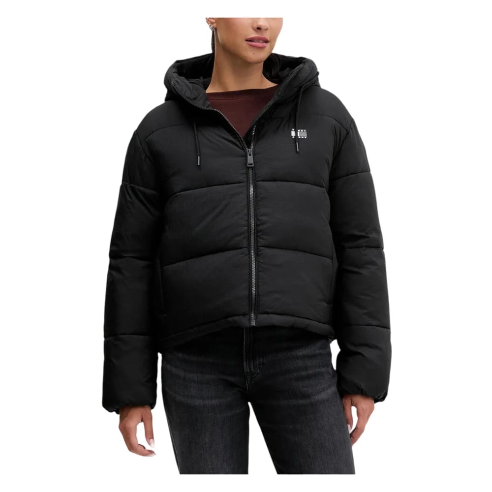 Tommy Jeans, Jakker , Dame, Sort, L, Uld, Hætte Puffer Jakke