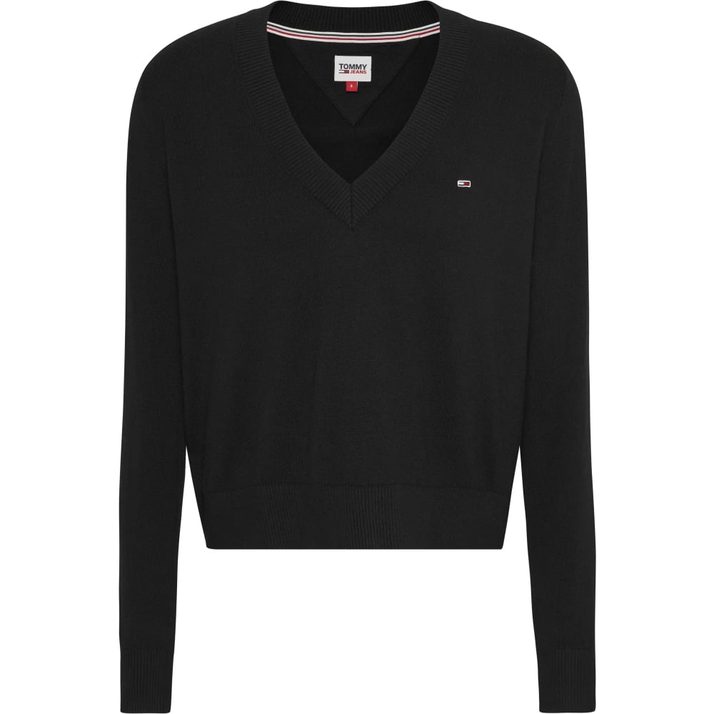 Tommy Jeans, Strik , Dame, Sort, XS, Bomuld, Essential V-Neck Sweater Sort