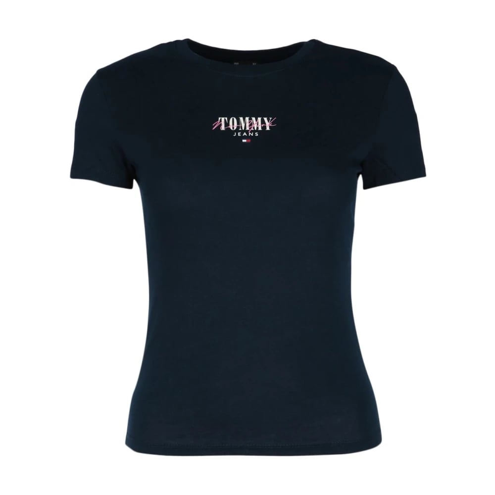 Tommy Jeans, Toppe , Dame, Blå, 2XS, Tyl, Essential Crew Neck Logo T-Shirt