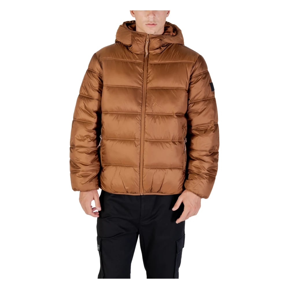 Tommy Jeans, Jakker , Herre, Brun, M, Uld, Hættet Logo Puffer Jakke