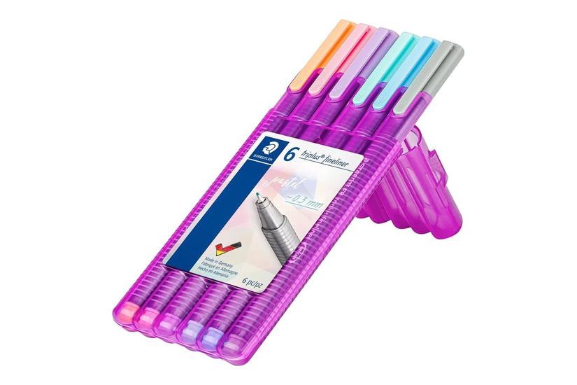 STAEDTLER triplus 334 - fineliner - pastel lavender, pastelblå himmel, pastel peach, pastel light rose, pastel mint, pastel light gray (pakke med 6)