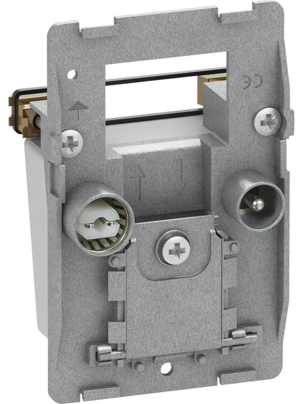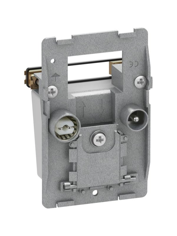 Lauritz Knudsen LK FUGA - Afdkning til antenneudtag med 2 stk. IEC-stik (TV/radio) og 1 F-connector (data), modul, lysegr (restsalg)