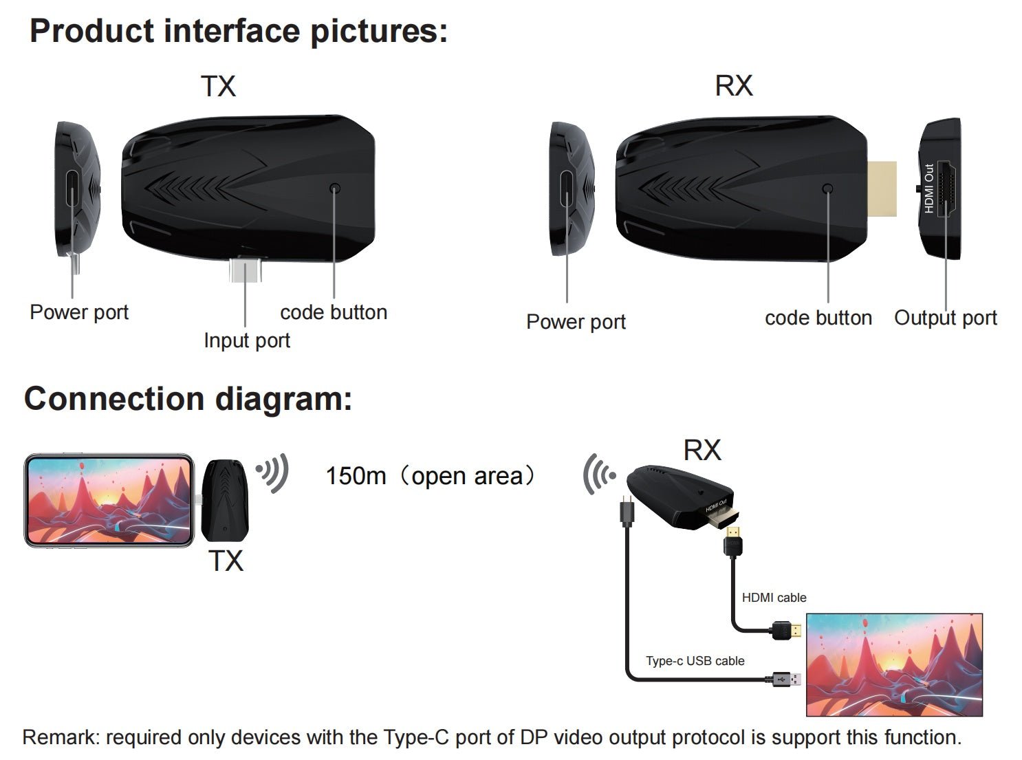 NÖRDIC Trådløs forlænger USB-C til HDMI 150 m