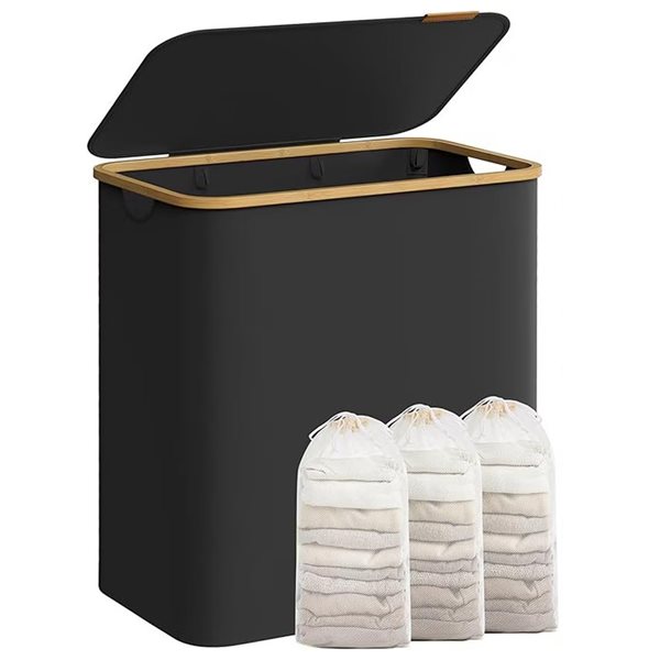 Stor vasketøjskurv med låg og 3 rum - Svart