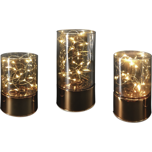 6 stk Lys Vaser, kobber med lyskæde (sæt med 3 stk)