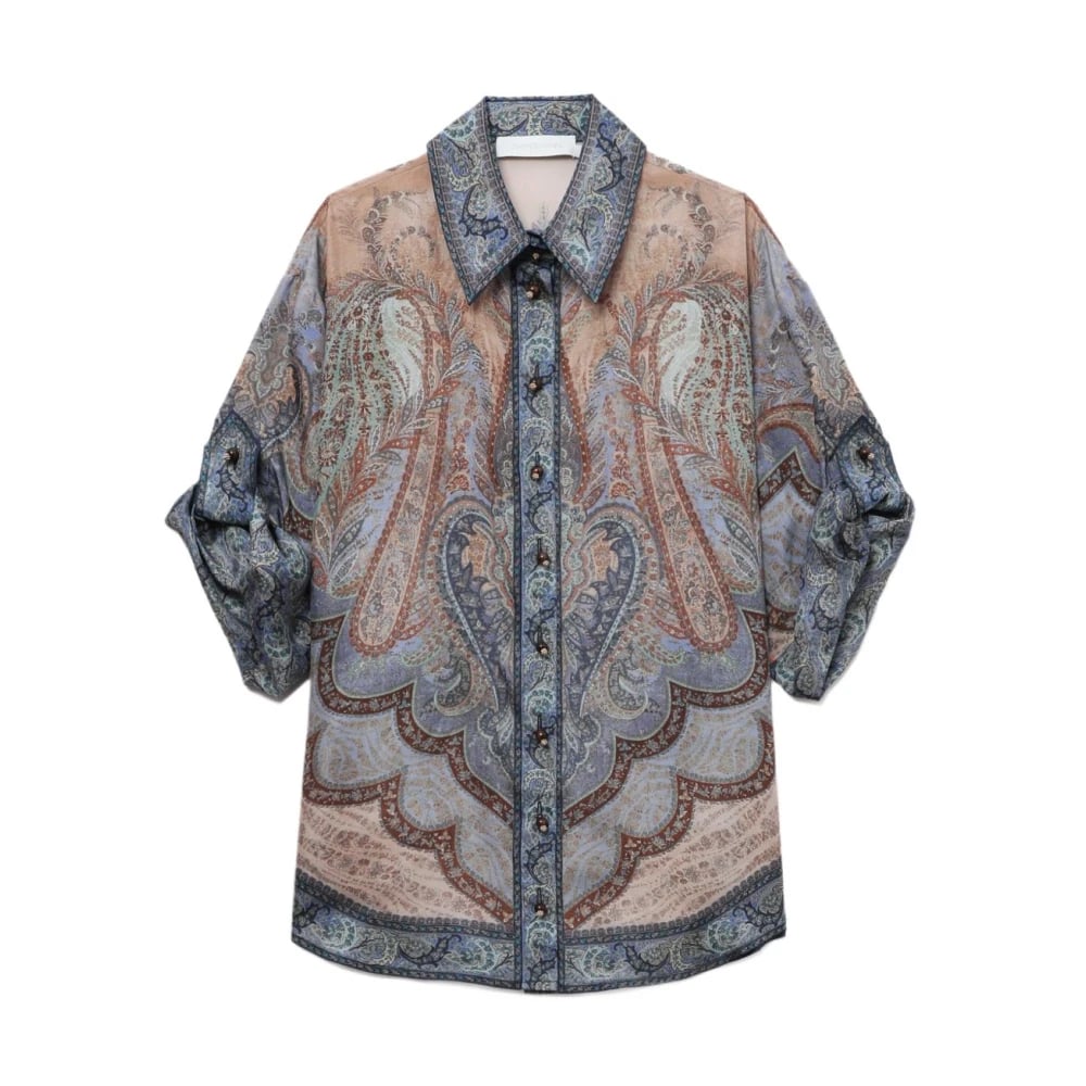 Zimmermann, Bluser og skjorter , Dame, Flerfarvet, XS, Tyl, Wanderlust Kortærmet Skjorte