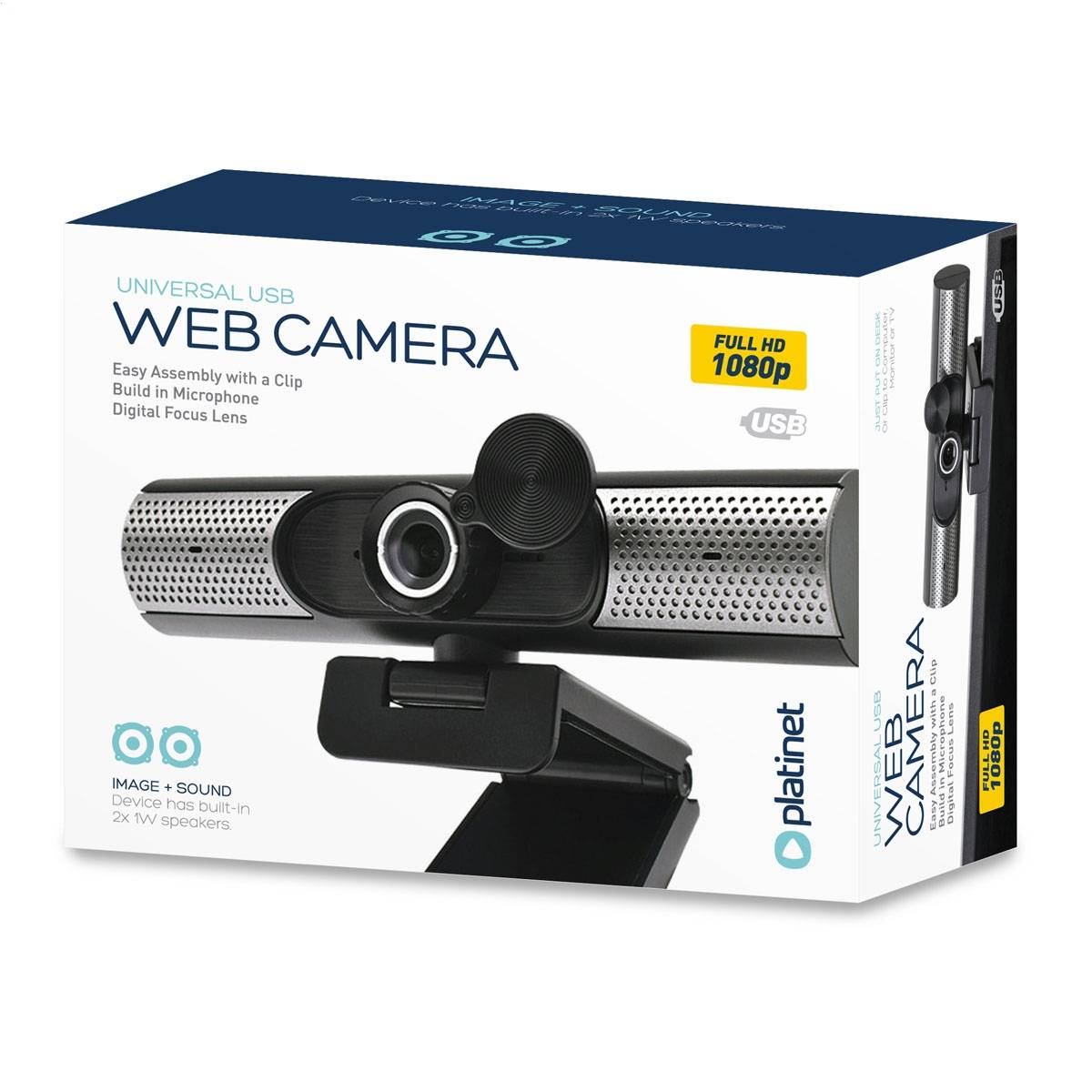 PLATINET Webkamera 1080P med mikrofon og 2x Højttalere - Sort